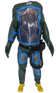 Normally a hazmat suit is “an overall garment worn to protect people from hazardous materials or substances, including chemicals, biological agents, or radioactive materials.” More generally, hazmat suits may provide