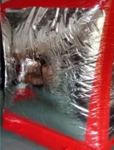 The Casualty Evacuation Suit consists of a complete carrying bag which is designed along with an Optically Clear Wide Vision Visor and equipped with gloves & medical port, providing complete